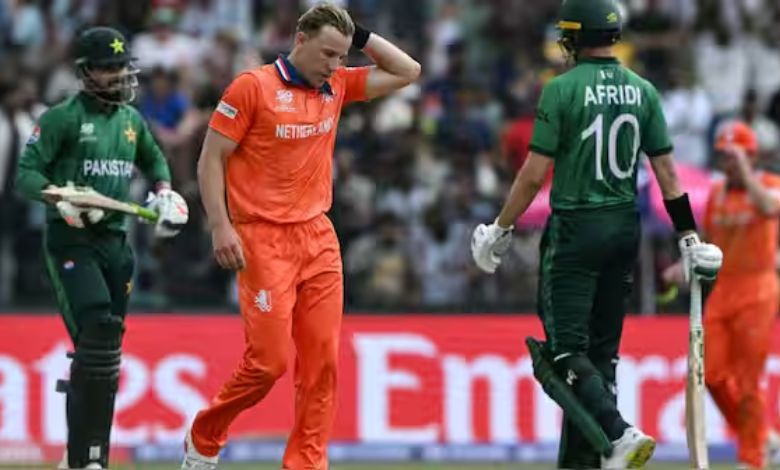 નેધરલેન્ડ્સે 147 રન કર્યા બાદ ખરાબ પ્રદર્શનમાં પાકિસ્તાને એક તબક્કે 119 રનમાં સાત વિકેટ ગુમાવી દીધી હતી. ખાસ કરીને ભારતીય મૂળના ઑફ સ્પિનર આર્યન દત્તે (Aryan DUTT) પાકિસ્તાનની ટીમને મુસીબતમાં મૂકી દીધી હતી. તેણે ઓપનર સાઇમ અયુબ (24 રન) અને સલમાન આગા (12 રન)ને આઉટ કર્યા હતા.