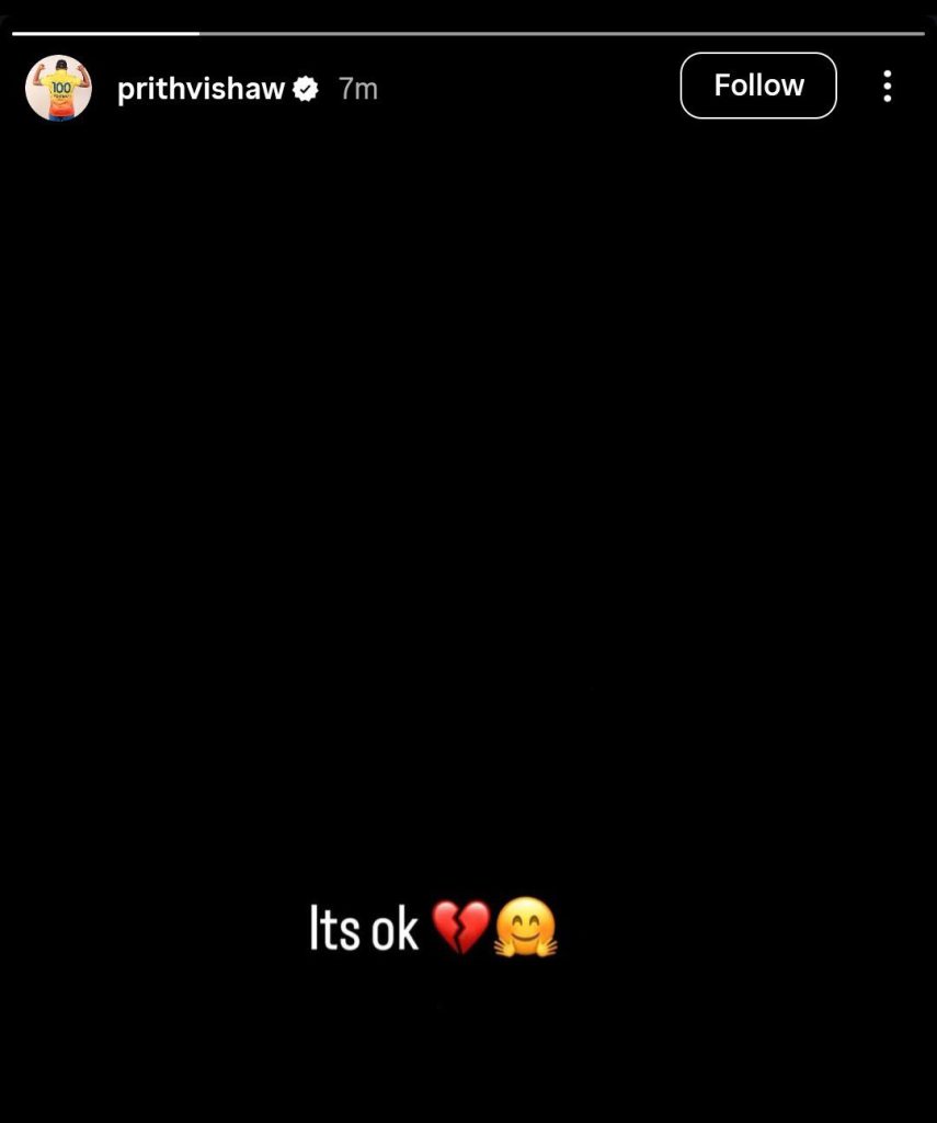 મંગળવારે બે વખત (પ્રારંભમાં નામની જાહેરાત વખતે અને પછી નામની ઝડપી જાહેરાતમાં) પૃથ્વીને કોઈએ પણ ખરીદવામાં રસ ન બતાવ્યો એટલે તે નિરાશ થઈ ગયો હતો. ત્યારે (રાત્રે 9.10 વાગ્યે) પૃથ્વીએ ઇન્સ્ટાગ્રામ પરની સ્ટોરીમાં ભાવુક થઈને ` ઇટ્સ ઓકે’ એવું લખ્યું હતું અને એ સાથે દિલ તૂટ્યું હોય એવું ઇમોજી જોડ્યું હતું.