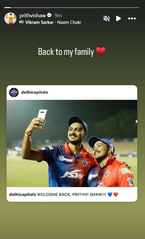 જોકે સાત જ મિનિટ બાદ પૃથ્વીને ત્રીજા રાઉન્ડમાં દિલ્હીના ફ્રૅન્ચાઇઝીએ 75 લાખ રૂપિયાની મૂળ કિંમતે ખરીદી લીધો હતો. ત્યાર બાદ ખુશખુશાલ પૃથ્વીએ અગાઉની પોસ્ટ ડીલીટ કરી નાખી હતી અને ઈશ્વરનો આભાર માનીને ગૉડ્સ પ્લાન એવું લખવાની સાથે સકારાત્મક ઇમોજી જોડ્યું હતું અને નવી પોસ્ટમાં ‘ હું મારા પરિવારમાં પાછો આવી ગયો’ એવું લખ્યું હતું. આ પોસ્ટમાં પૃથ્વીની કૅપ્ટન અક્ષર પટેલ સાથેની જૂની તસવીર વેલકમ બૅકના સંદેશ સાથે બતાવવામાં આવી હતી.