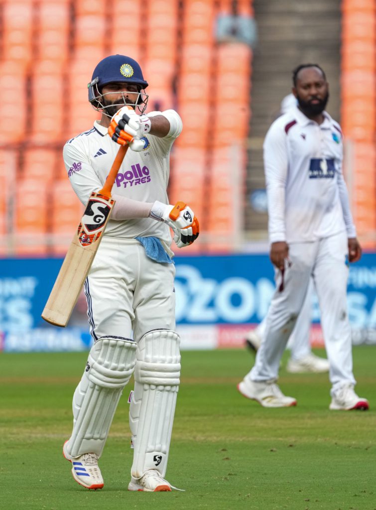 બાપુ’ રવીન્દ્ર જાડેજા (176 બૉલમાં 104 નૉટઆઉટ)એ છઠ્ઠી ટેસ્ટ સદી ફટકારીને તલવારબાજીની આગવી સ્ટાઇલમાં સેલિબ્રેશન કર્યું હતું. તે હંમેશની જેમ આ વખતે પણ સ્વૉર્ડ સેલિબ્રેશન’ કરશે એની સૌને ખાતરી હતી અને તેણે એવું જ કર્યું અને સૌએ તેની આ સદીને તાળીઓથી વધાવી લીધી હતી. ઘરઆંગણે તેની આ ચોથી સદી છે. અમદાવાદ પહેલાં તે રાજકોટમાં બે અને મોહાલીમાં એક ટેસ્ટ સદી ફટકારી ચૂક્યો છે.