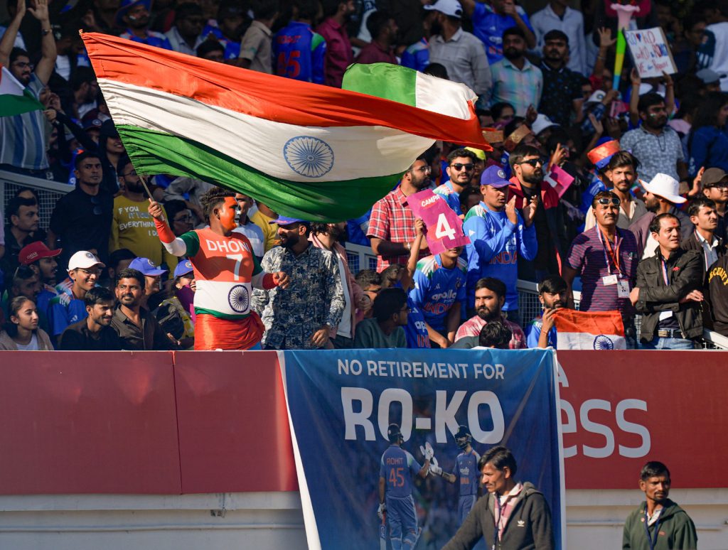 એ પહેલાં, રોહિત અને શુભમન ગિલે ખૂબ ધીમી શરૂઆત કરી હતી. પહેલી પાંચ ઓવરમાં ભારતના ફક્ત નવ રન હતા. જોકે પછીથી બન્નેએ રનમશીનને વેગ આપ્યો હતો અને છેક 70મા રને રોહિતની વિકેટ સાથે તેમની ભાગીદારી તૂટી હતી. જોકે ગિલ સતત બીજી મૅચમાં પણ હાફ સેન્ચુરી પૂરી કરવામાં સફળ થયો હતો. તે લાગલગાટ બીજી મૅચમાં 56 રન કરીને આઉટ થયો. ભારતે 70 રનથી 118 રનની વચ્ચે (48 રનમાં) ઉપરાઉપરી ચાર વિકેટ ગુમાવી ત્યાર પછી હોમટાઉન હીરો બાપુ રવીન્દ્ર જાડેજા અને વિકેટકીપર કે. એલ. રાહુલે બાજી સંભાળી લીધી હતી અને ધબડકો રોક્યો હતો. વિરાટ કોહલી (23 રન)ની ચોથી વિકેટ 24મી ઓવરમાં 118મા રને પડ્યા બાદ જાડેજા-રાહુલની જોડીએ સ્કોર 36મી ઓવરને અંતે 4/175 ઉપર પહોંચાડ્યો હતો. રાહુલ 33 રને અને જાડેજા 24 રને રમી રહ્યા હતા. પહેલી ચારમાંથી ત્રણ વિકેટ ક્રિસ્ટિયન ક્લાર્કે લીધી હતી.