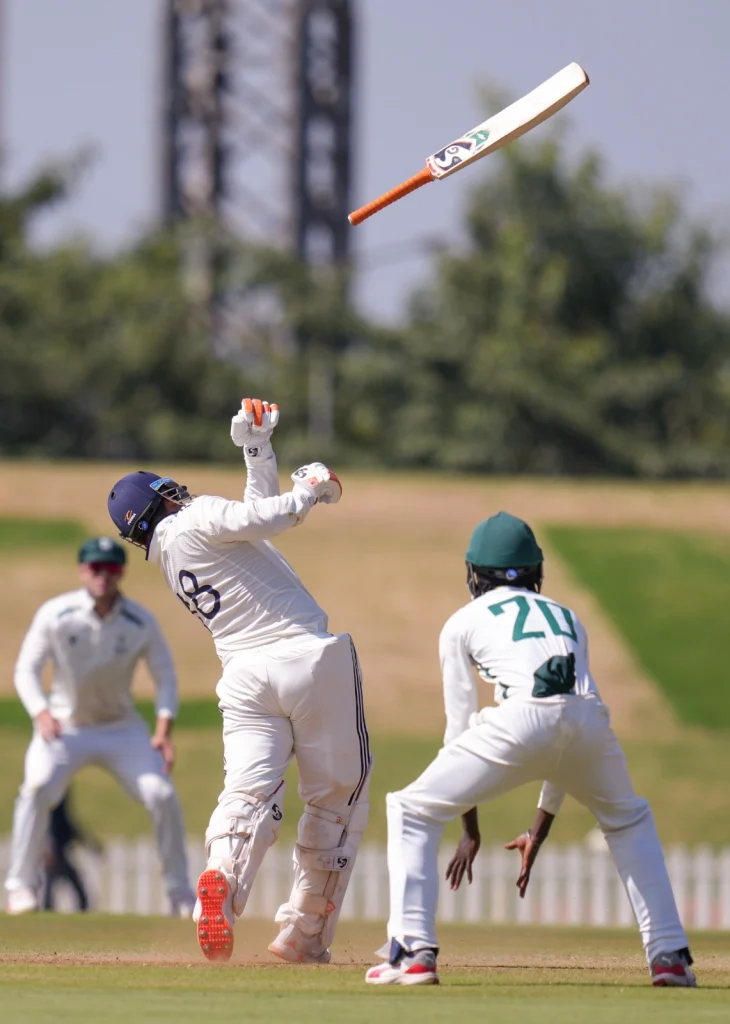 18 વર્ષના મુંબઈના આયુષ મ્હાત્રેએ સાઉથ આફ્રિકન ટીમના બોલર્સનો સમજદારીથી સામનો કર્યો હતો અને 76 બૉલમાં 10 ફોરની મદદથી 65 રન કર્યા હતા. તેની અને સાઇ સુદર્શન (32 રન) વચ્ચે 90 રનની ભાગીદારી થઈ હતી. જોકે આયુષની વિકેટ પડ્યા બાદ ધબડકો શરૂ થયો હતો.
