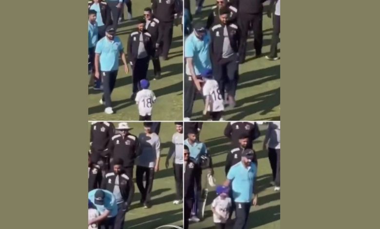 વિરાટની જર્સીમાં સજ્જ બાળ-ચાહક રોહિતને પગે લાગવા આવ્યો, હિટમૅને પીઠ થાબડીને તેને માનપૂર્વક પાછો મોકલ્યો