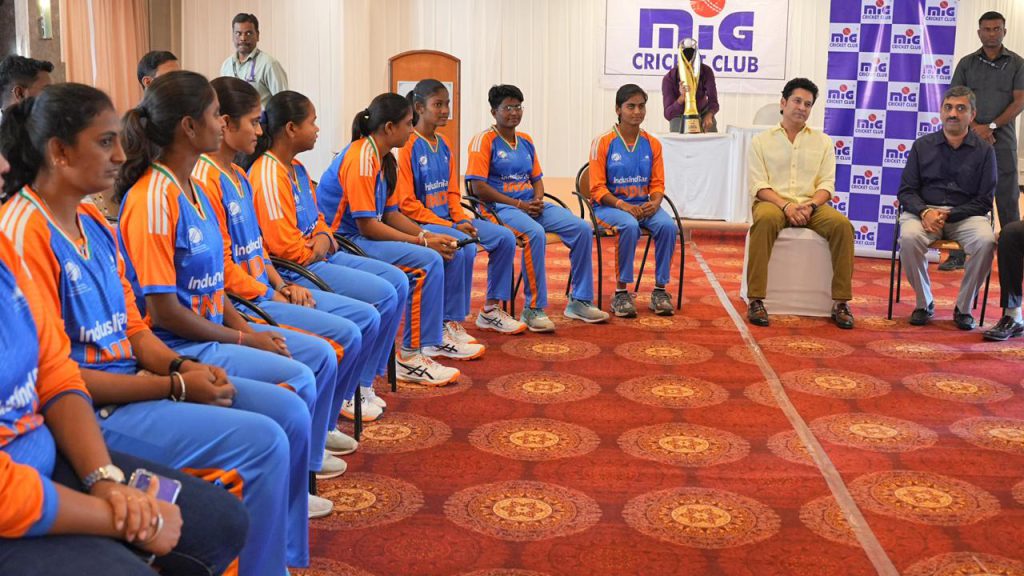 મુંબઈઃ તાજેતરમાં બ્લાઇન્ડ મહિલા ક્રિકેટરો માટેનો સૌપ્રથમ ટી-20 વર્લ્ડ કપ જીતનાર ભારતીય ક્રિકેટ ટીમની ખેલાડીઓને સચિન તેન્ડુલકર બુધવારે બાંદરા (પૂર્વ)ની એમઆઇજી (MIG) ક્રિકેટ ક્લબમાં મળ્યો હતો અને વિશ્વ કપ (World Cup)ની ટ્રોફીની અસાધારણ સિદ્ધિ બદલ તેમને ખૂબ બિરદાવી હતી તેમ જ પોતાના અનુભવ પરથી તેમને સલાહ-સૂચનો આપીને તેમને પ્રોત્સાહિત કરી હતી.