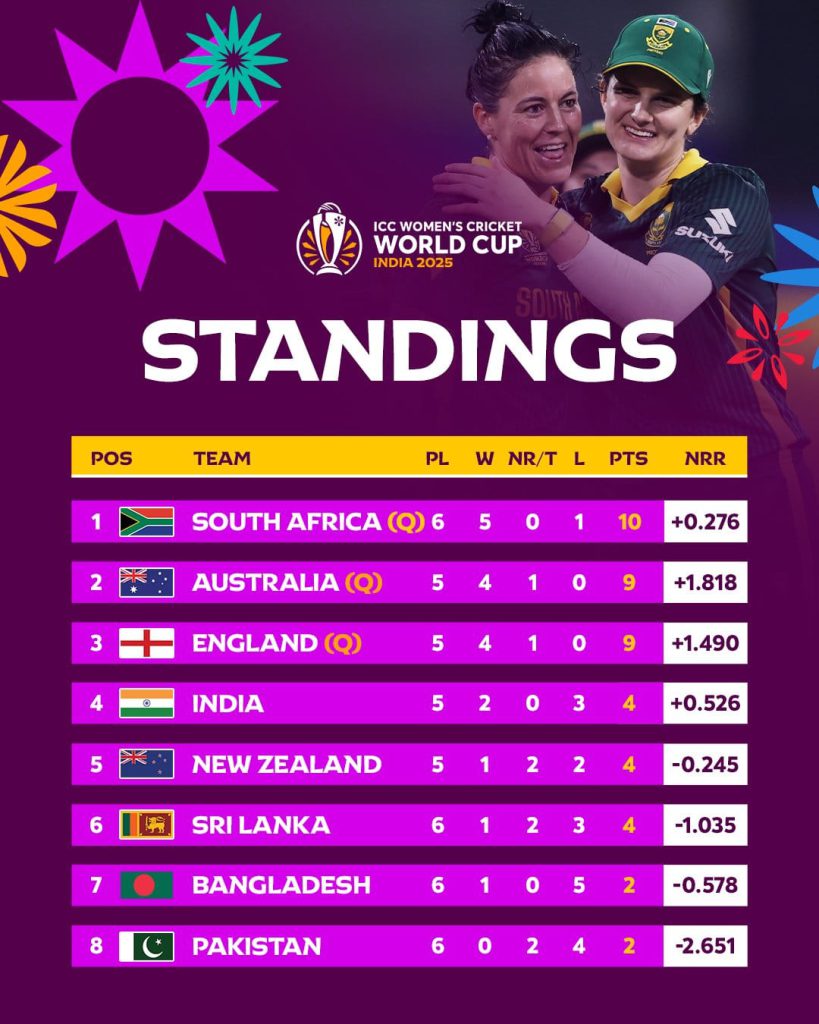 કોલંબો: મહિલાઓના વન-ડે વર્લ્ડ કપમાં બીજી ઑક્ટોબરે પાકિસ્તાનને બાંગ્લાદેશે આંચકો આપ્યો હતો અને પાંચમી ઑક્ટોબરે પાકિસ્તાનને ભારતે જોરદાર પછડાટ ખવડાવી ત્યાર બાદ ફાતિમા સનાની ટીમ બેઠી જ ન થઈ શકી અને મંગળવારે સાઉથ આફ્રિકાએ પાકિસ્તાનને મરણતોલ ફટકો માર્યો હતો જેને પગલે આ દમ વગરની ટીમ ટૂર્નામેન્ટની બહાર ફેંકાઈ ગઈ છે.
