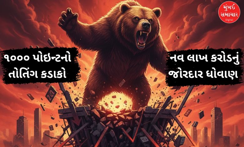 શેરબજારમાં કત્લેઆમ: ૧૦૦૦ પોઇન્ટનો તોતિંગ કડાકો, નવ લાખ કરોડનું જોરદાર ધોવાણ