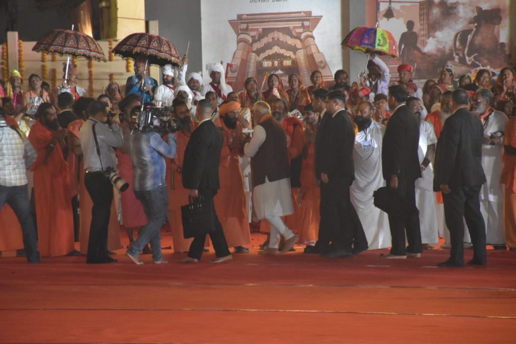 પીએમ મોદી VIP ગેસ્ટહાઉસમાં સોમનાથ ટ્રસ્ટથી બેઠક પૂર્ણ કરીને હમીરજી સર્કલથી પગપાળા સોમનાથ મંદિરે આવ્યાં હતાં. દિગ્વિજય દ્વાર પાસે સાધુ સંતોએ પીએમ મોદીનું અભિવાદન પણ કર્યું હતું. ત્યાર બાદ પીએમ નરેન્દ્ર મોદીએ સોમનાથ મહાદેવના દર્શન કરીને ધન્યતા અનુભવી હતી. સોમનાથ મંદિર પરિસર ‘મોદી મોદી’ અને ‘હર હર મહાદેવ’ના નાદથી ગુંજી ઉઠ્યું. પીએમ મોદીએ અહીં ભગવાન સોમનાથ દાદાના દર્શન કરી પૂજા અર્ચના કરી હતી.