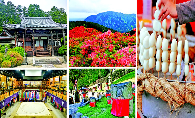 ઓસાકા અને નારા વચ્ચે આવેલું આ ટચૂકડું ટાઉન પહાડોથી ઘેરાયેલું છે. મજાની વાત એ છે કે આ શહેરના સુમો ખ્યાતનામ છે, ત્યાંનાં અઝિલિયા ફૂલો પણ વખણાય છે. અમે ગામમાં જઈને પહેલું કામ માઉન્ટ કાત્ઝુરાગી પર હાઈક કરવાનું કર્યું. તેના માટે પહેલાં તો અમે બસ સ્ટોપ નજીકથી જ તળેટીમાંથી કેબલ કાર લીધી અને ટોચ પર પહોંચી ગયાં. ત્યાં માઉન્ટન ટોપ પર લેટ સરફેસ પર હાઇક કરવાની ખાસ ભલામણ હતી. ત્યાં આઝિલિયા ફૂલોની જાણે ચાદર પથરાયેલી હતી. જાપાન પર કુદરતે જાણે ફૂલોથી જ મહેરબાની કરી હોય તેવું લાગતું હતું.